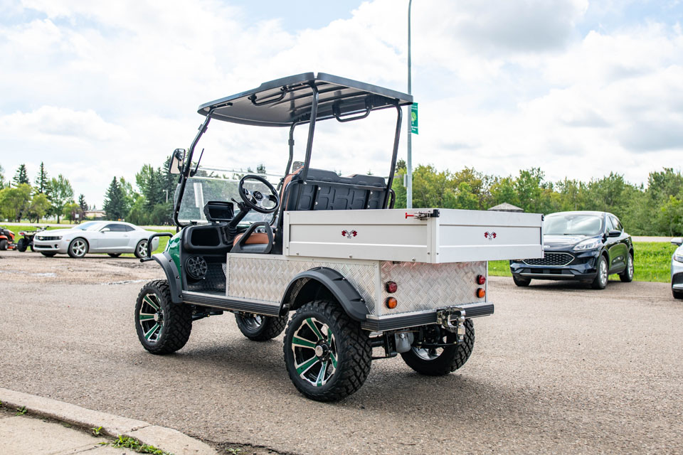 Cargo Box: Hauling heavy loads around the lake, farm, ranch, and beyond is easier with the HDK Turfman. Its spacious thermoplastic cargo box is built tough to handle anything you need to transport – perfect for those who demand strength and durability.