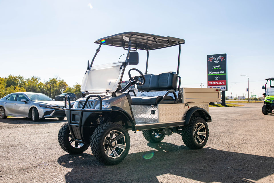 Cargo Box: Hauling heavy loads around the lake, farm, ranch, and beyond is easier with the HDK Turfman. Its spacious thermoplastic cargo box is built tough to handle anything you need to transport – perfect for those who demand strength and durability.