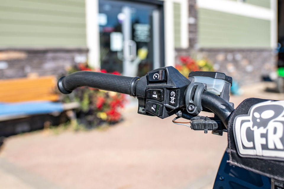 Rider-Ready Setup – CFR bars with riser give you confidence & control on steep terrain.